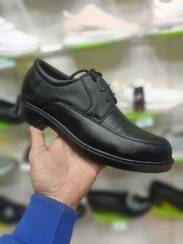 کفش بنددار تمام مشکی چرم صنعتی مردانه کد 218 + ارسال رایگان