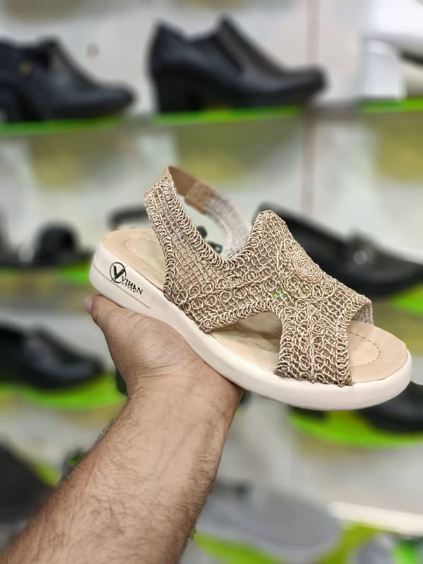 صندل بافت زنانه کرمی مدل راحتی تابستانه | سبک، نرم، خنک و مناسب پیادهروی روزمره با کیفیت بالا و قیمت اقتصادی + ارسال رایگان