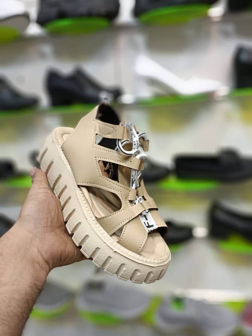 صندل لژدار زنانه اسپرت رنگ کرمی | مدل ترند با طراحی خاص + کیفیت تضمینی و ارسال رایگان