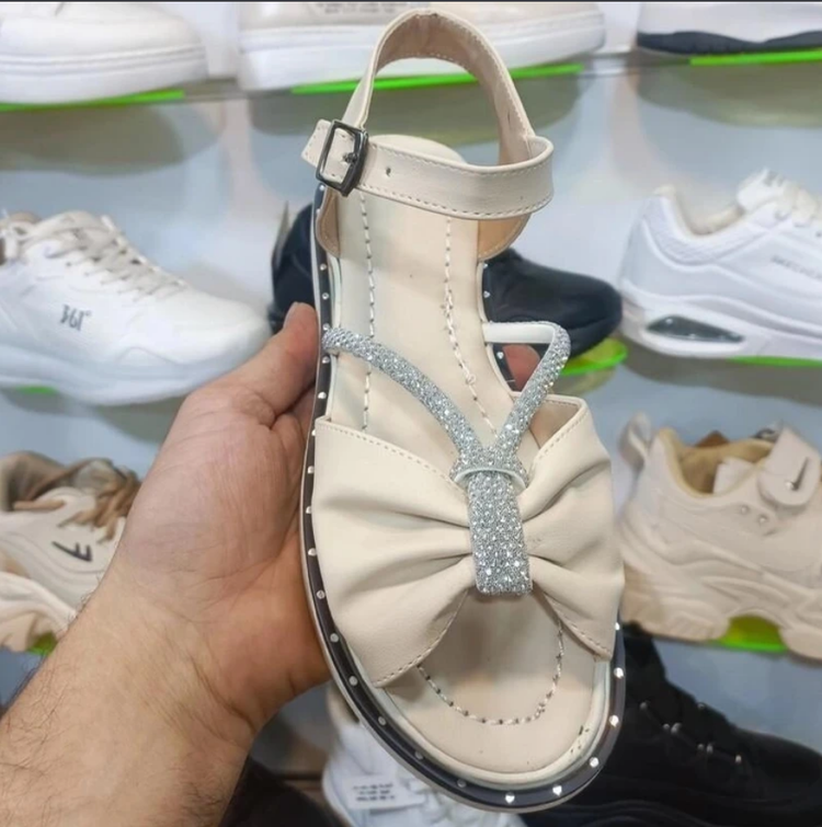 صندل دخترانه و زنانه نگینی پاپیونی +رنگ کرمی + زیره طبی نرم و راحت رنگ مشکی+ارسال رایگان