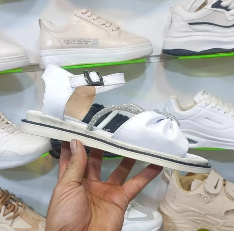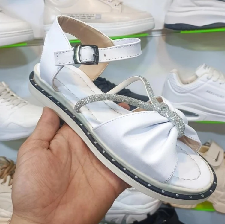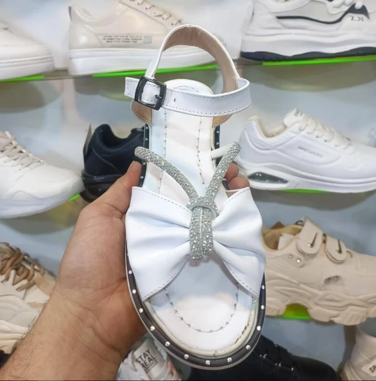 صندل دخترانه و زنانه نگینی پاپیونی +رنگ سفید+ زیره طبی نرم و راحترنگ سفید