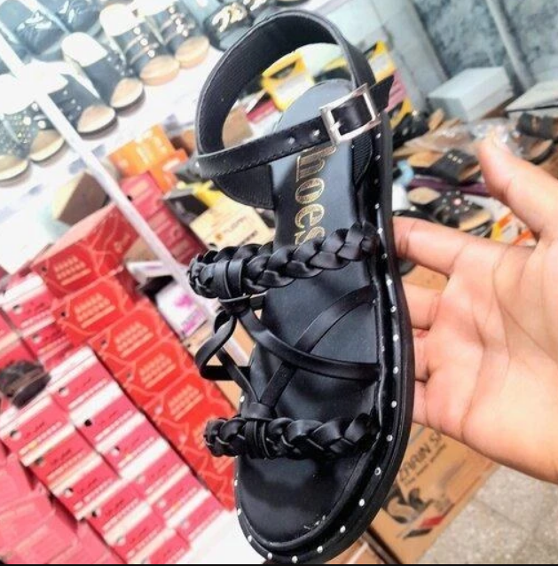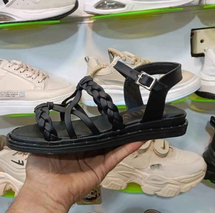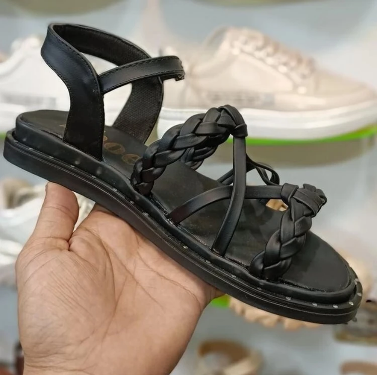 صندل طبی دخترانه زنانه طرح بافت شیک و ساده با زیره پیو رنگ مشکی