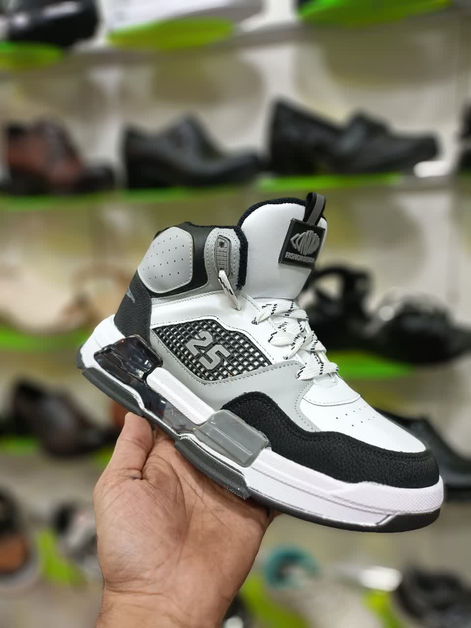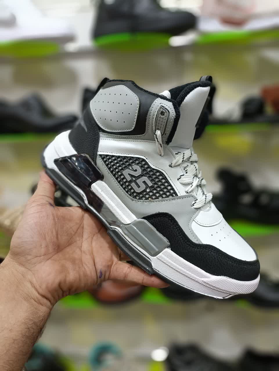 فروش فوق العاده کفش اسپرت مردانه مدل جردن 25 های کپی رنگ سفید طوسی ساقدار با کیفیت فوق العاده + ارسال رایگان