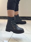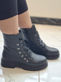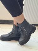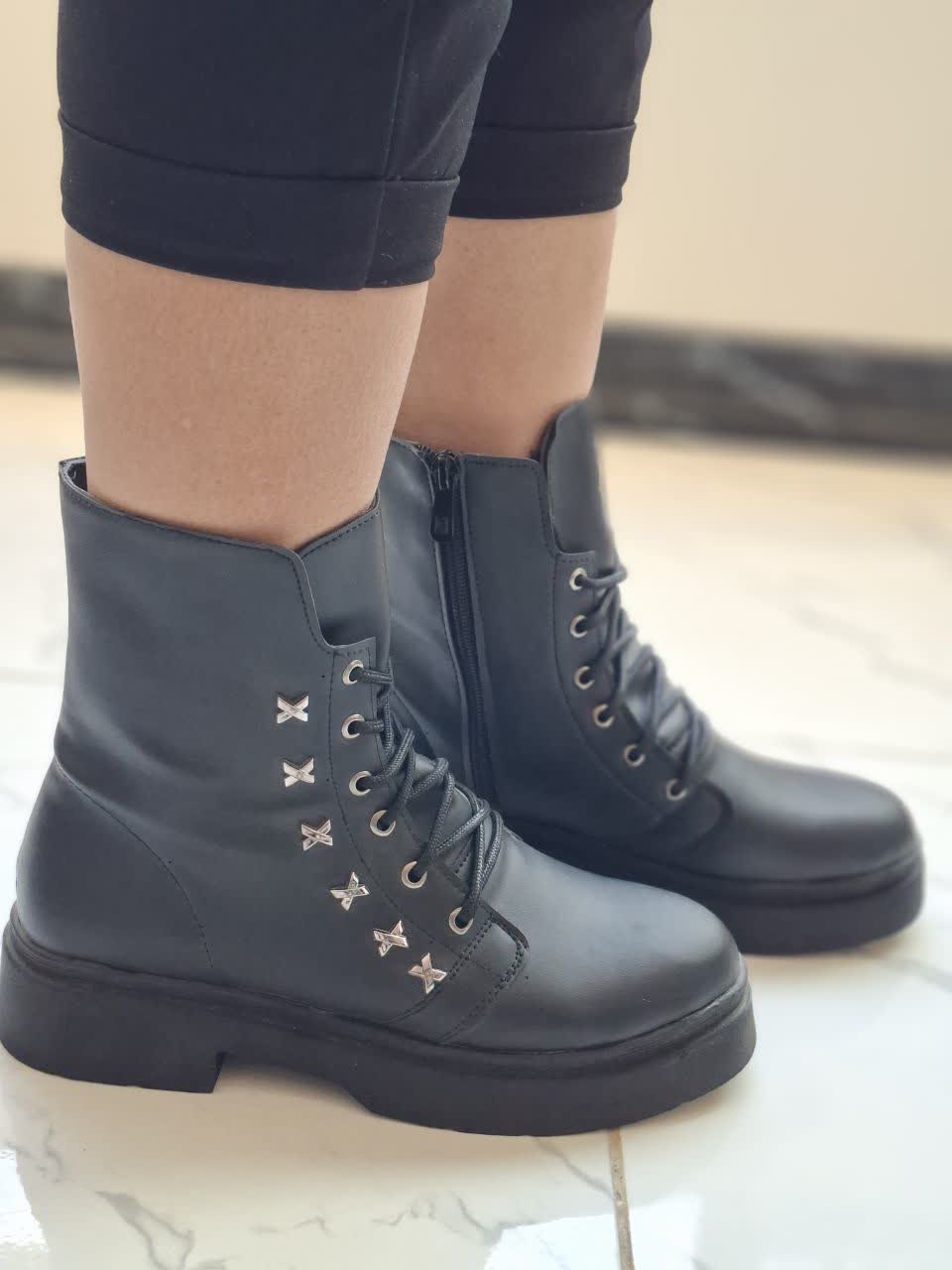 کفش بوت زنانه ساقدار بغل نگین رویه بنددار بسیار سبک لژ 3 سانتی