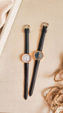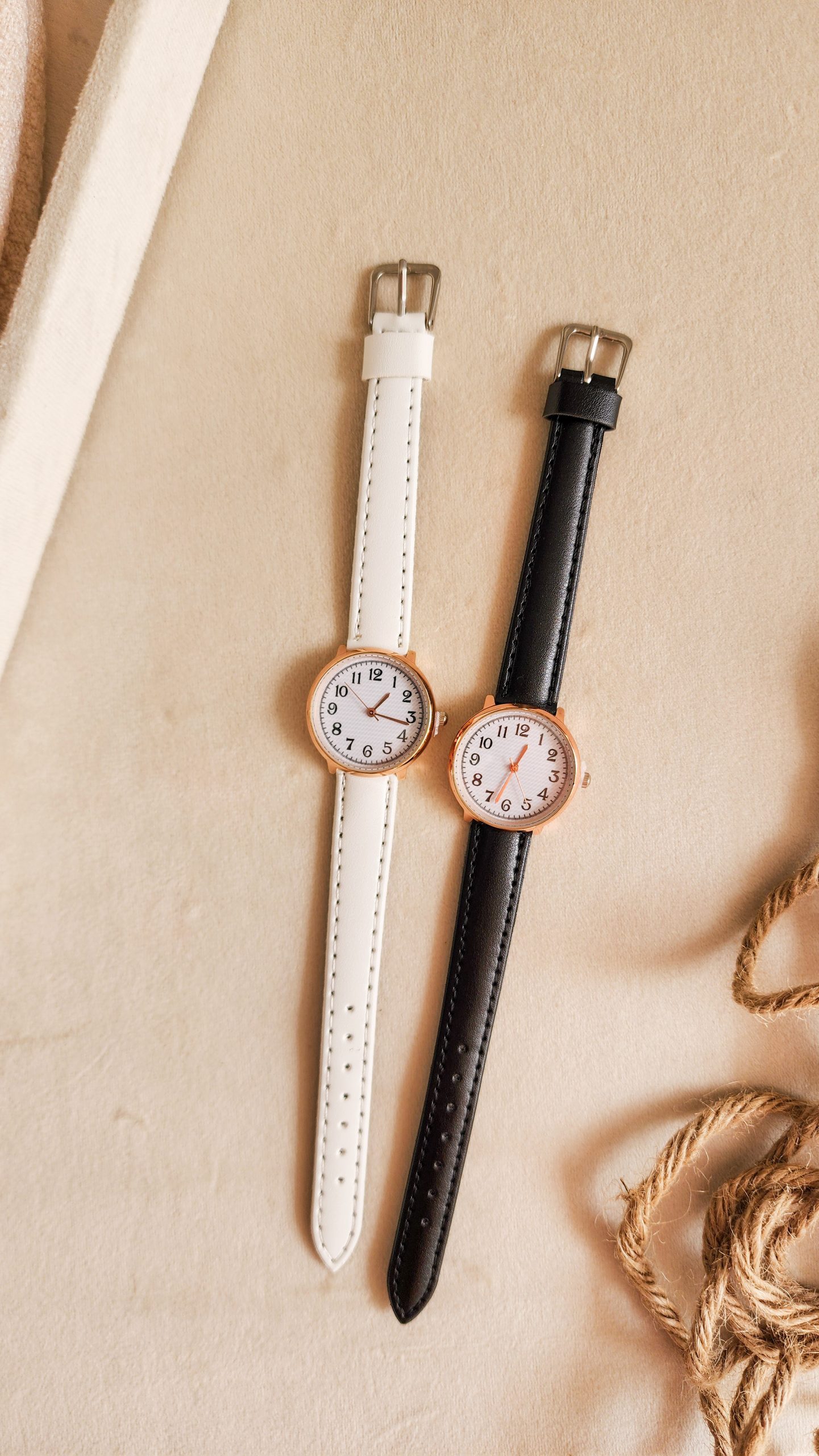 ساعت زنانه ی چرم پاییزه بند مشکی صفحه سفید ، کیفیت عالی + ارسال رایگان