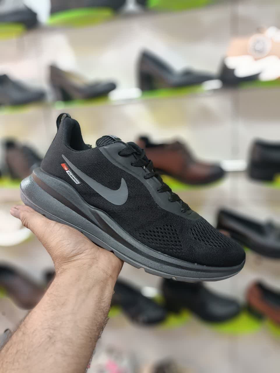 کتونی اسپرت مردانه تزریق مدل نایک(nike)|سایز44 |رانینگ |طبی| تمام مشکی کد 2012 + ارسال رایگان