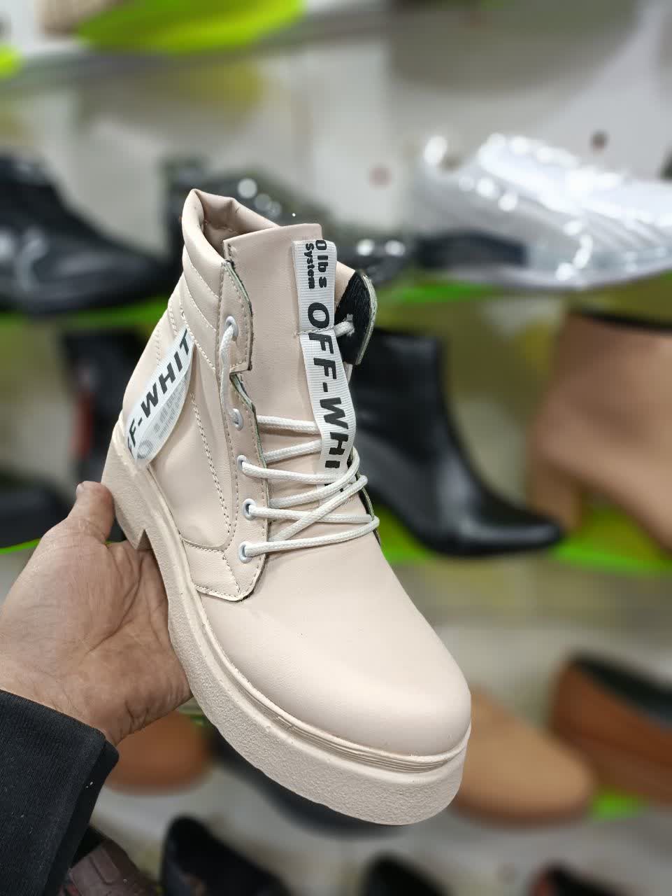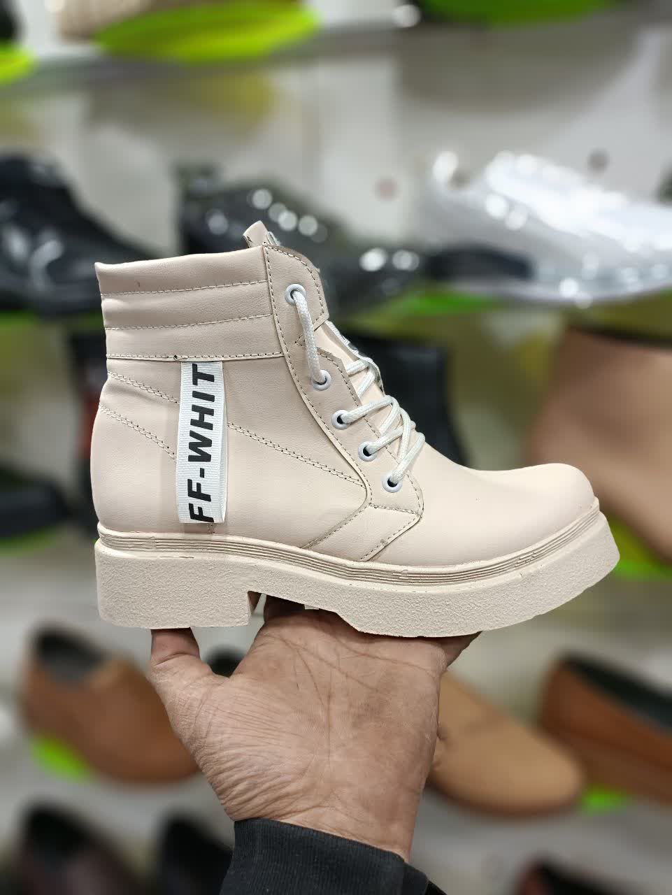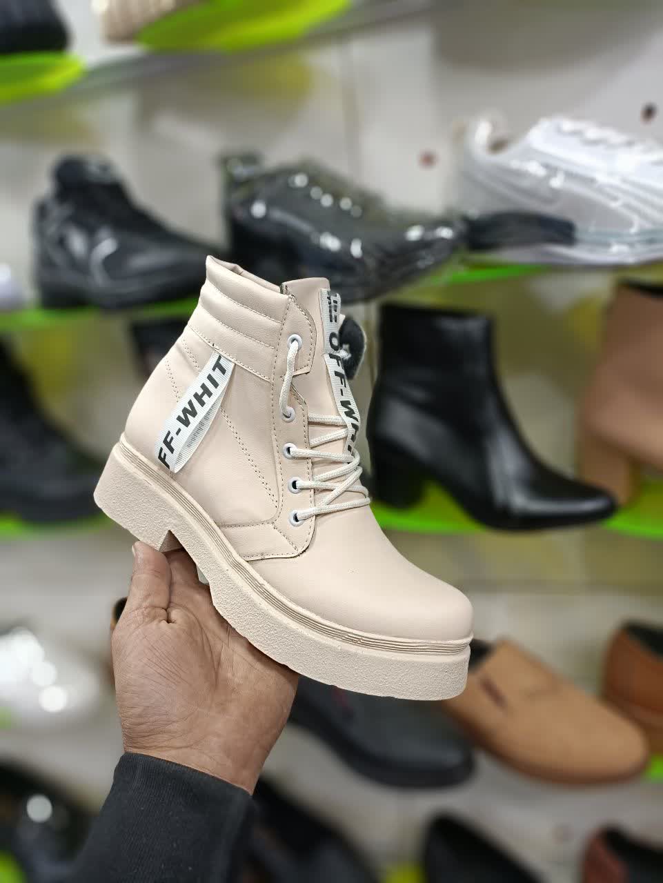نیم بوت زنانه کرمی ff whit کد 2081 + ارسال رایگان